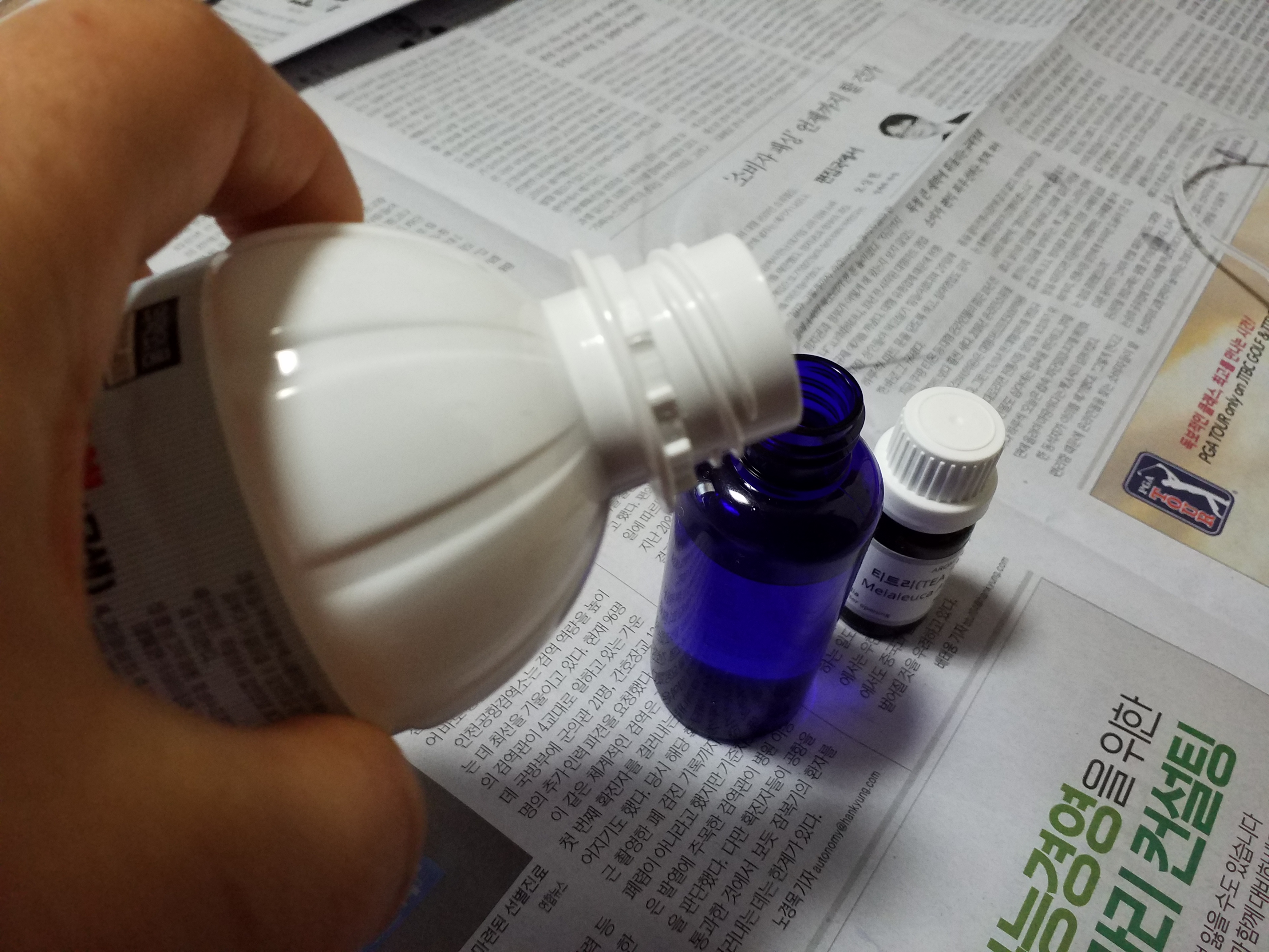 2. 에탄올만으로도 그대로 스프레이 하셔도 되지만, 저는 추가로 티트리를 넣었습니다.