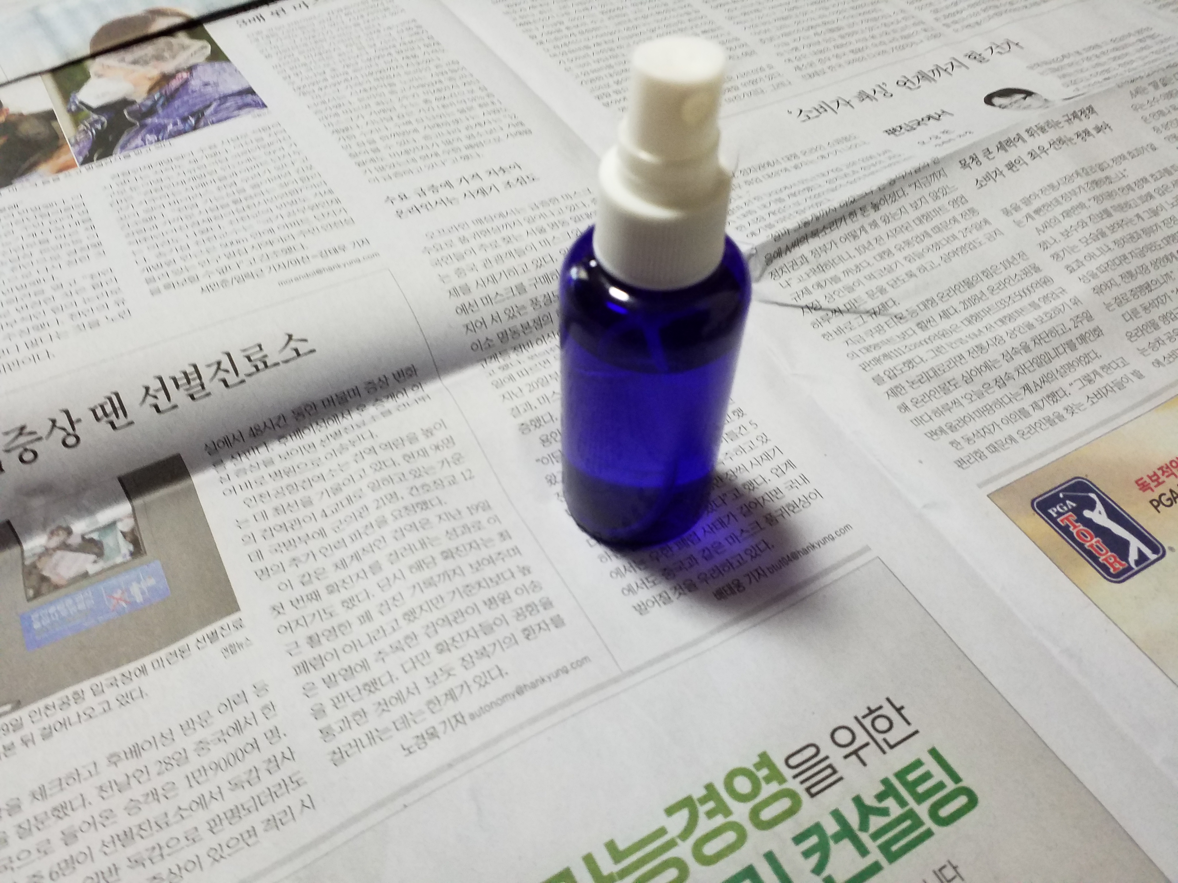 주재료는 에탄올과 스프레이 용기구요, 다른 재료는 구할수 있으면 첨가하면 좋으니까 참고만 하셔요