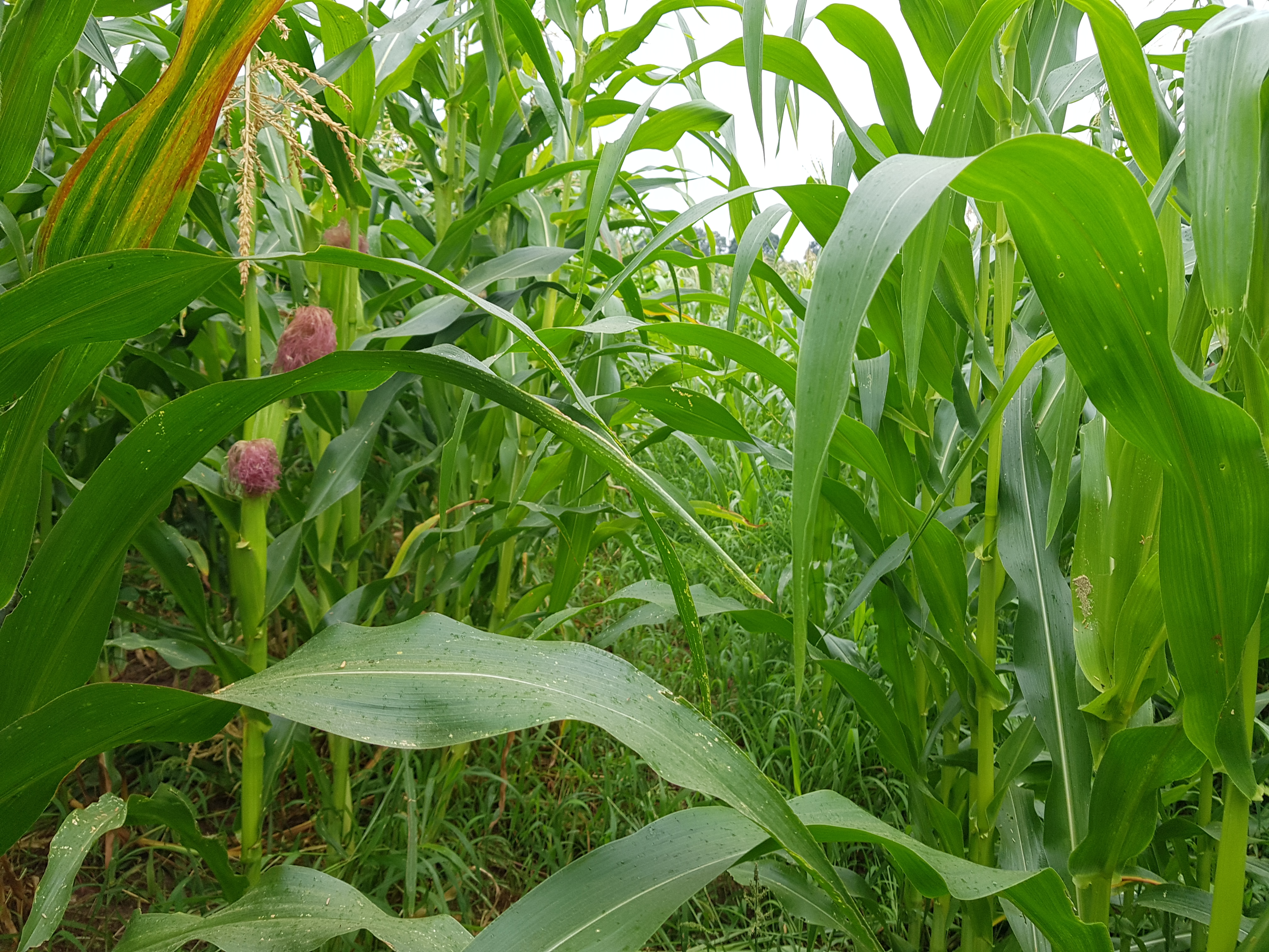 조금 일찍 심은것, 늦게 심은게 어우려져 있는 옥수수밭엔