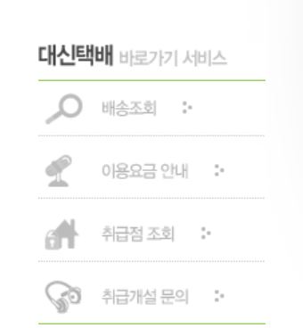 대신택배 메뉴에 보면 배송조회, 서비스안내등이 보이죠?