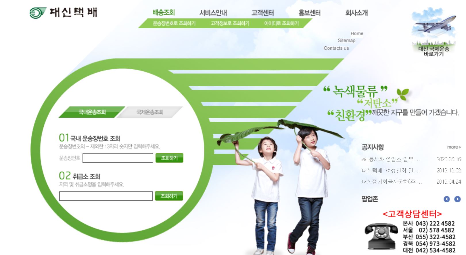 대신택배 사이트 들어가면 화면이 이렇게 뜹니다