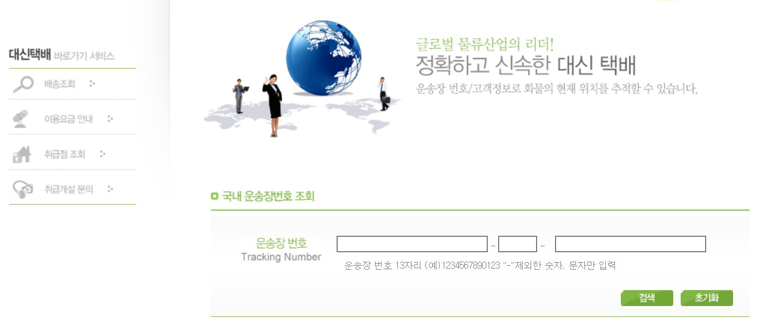 그리고 왼쪽에 대신택배 바로가기 서비스에 보시면