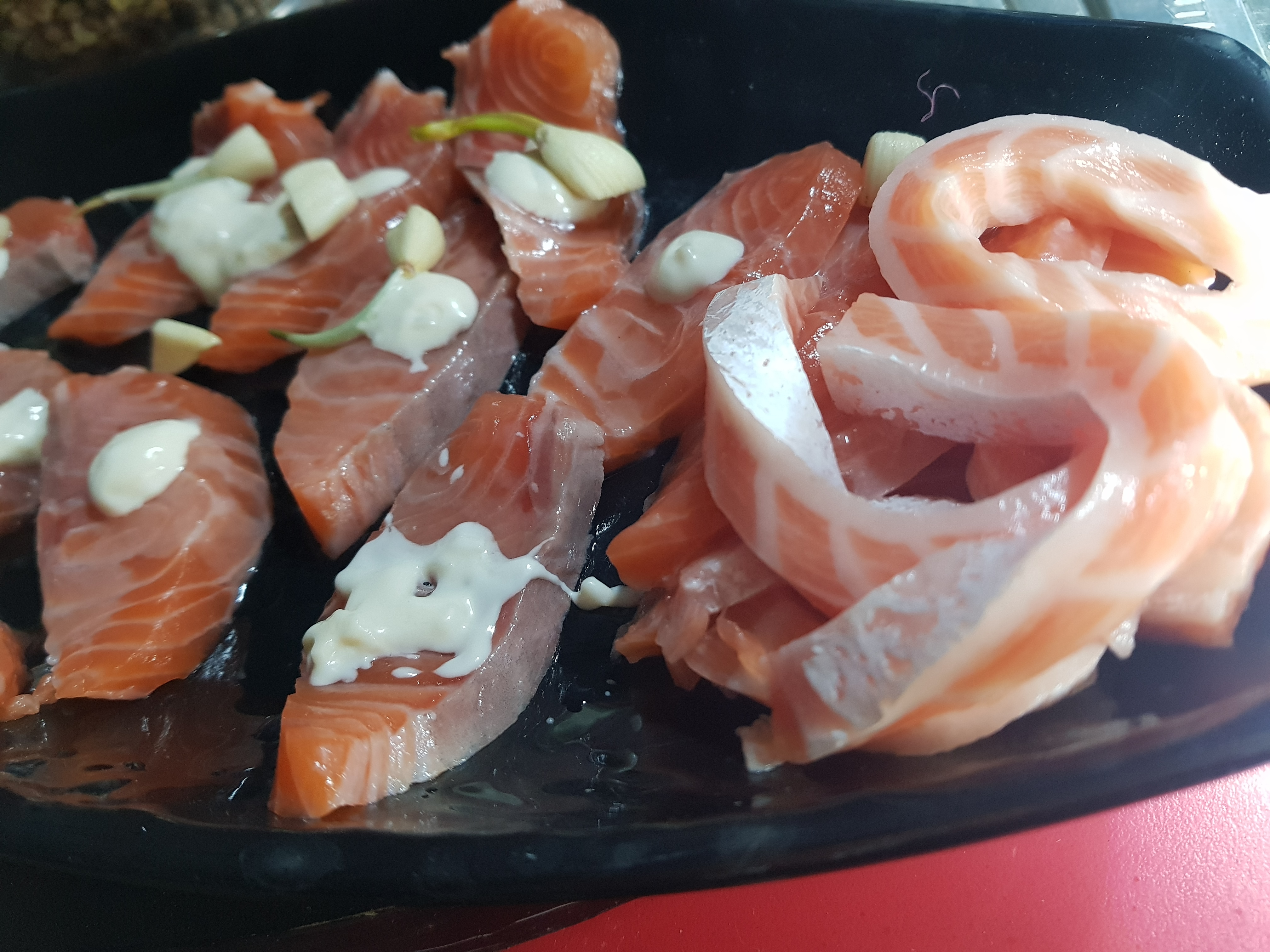 친구가 저를 위해 연어를 잘라서 구워주니...먹어야겠죠 ㅎㅎ