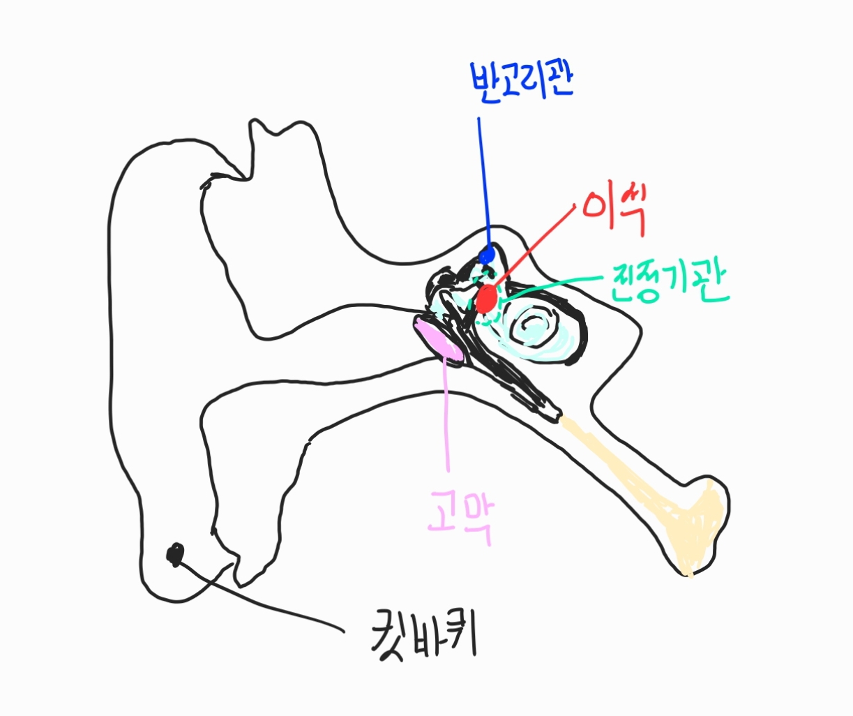 반고리관이라는 구조물이 있는데, 반고리관 내부에 이석이라는 물질이