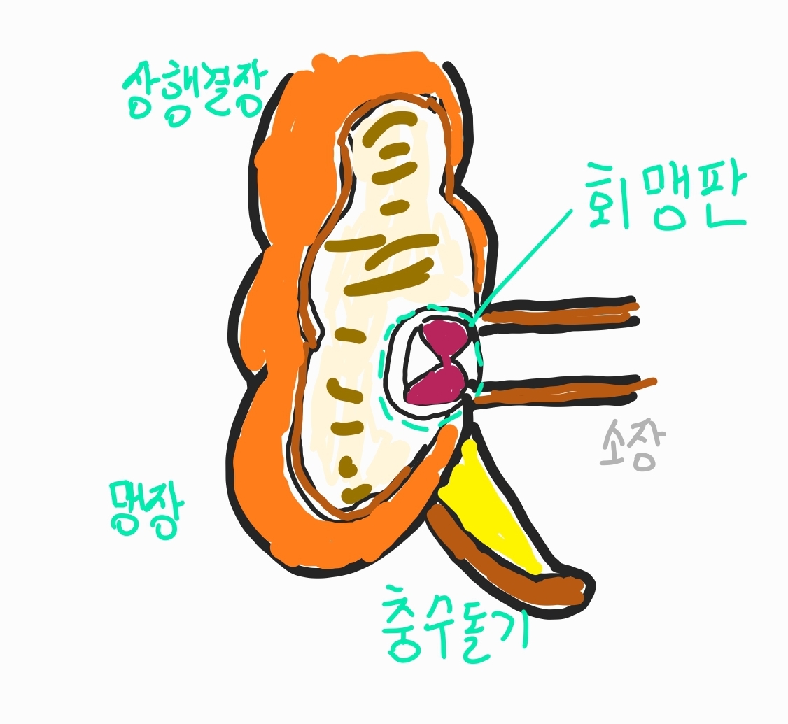 음식물들이 이곳을 지나가며 우리가 말하는 맹장수술은 맹장 아래 붙은 충수를 떼어내는 수술입니다.