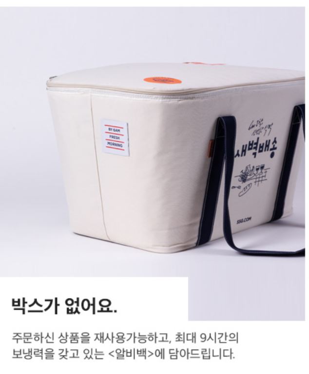 알비백은 SSG 새벽배송 가방이며 재사용이 가능한 보냉가방이구요