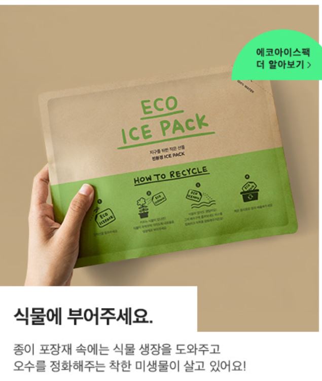 아이스백은 에코아이스팩인데, 이게 친환경적인 거구요. 식물 생장에 도움이 되기 때문에