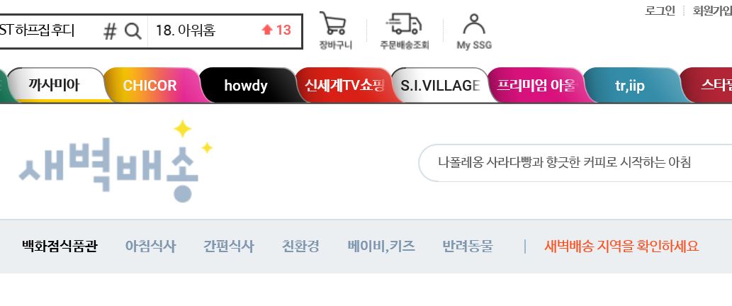 [새벽배송]을 클릭하시면 화면이 이동해요