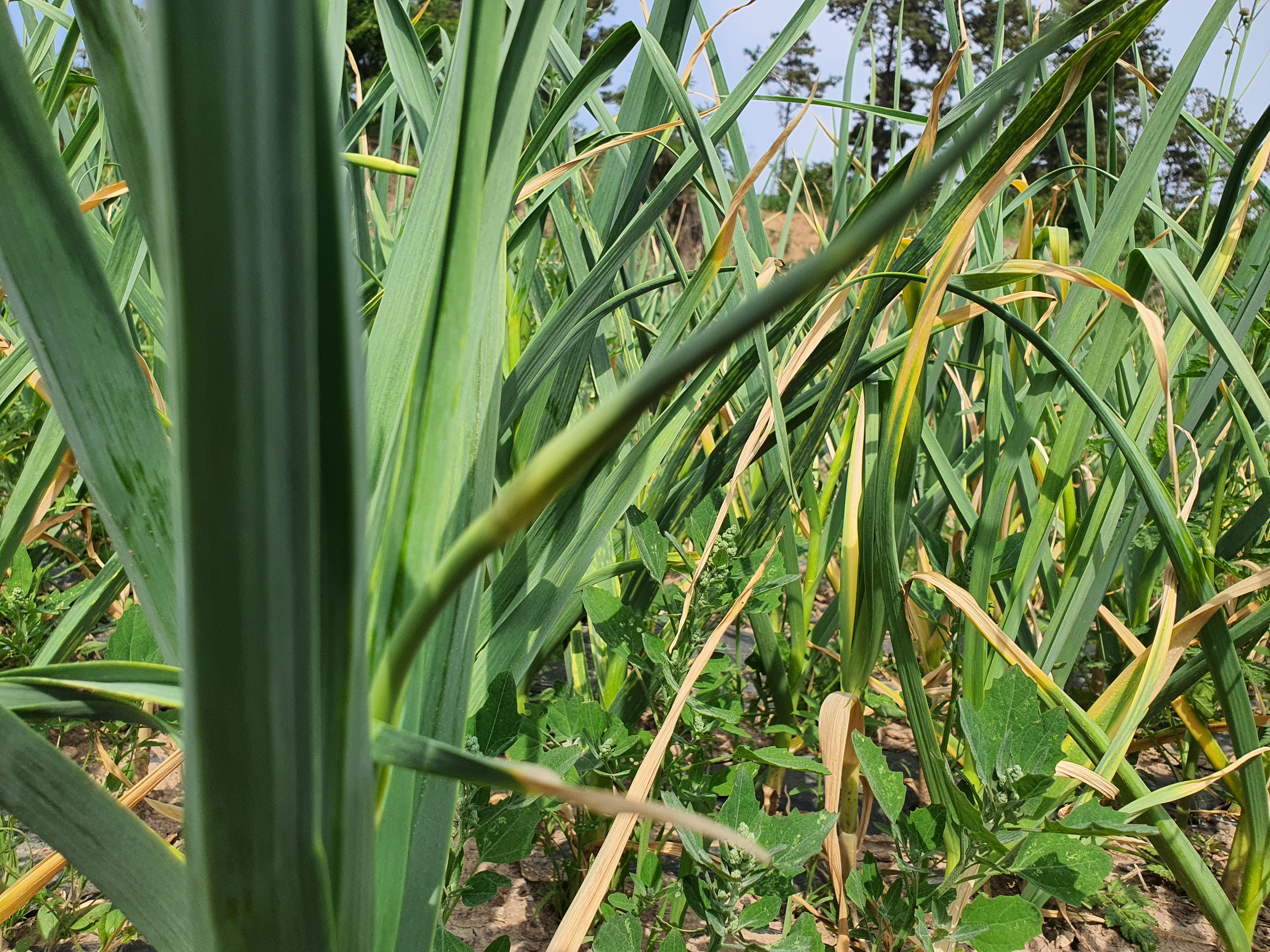 마늘밭을 보니 쫑이 올라왔네요