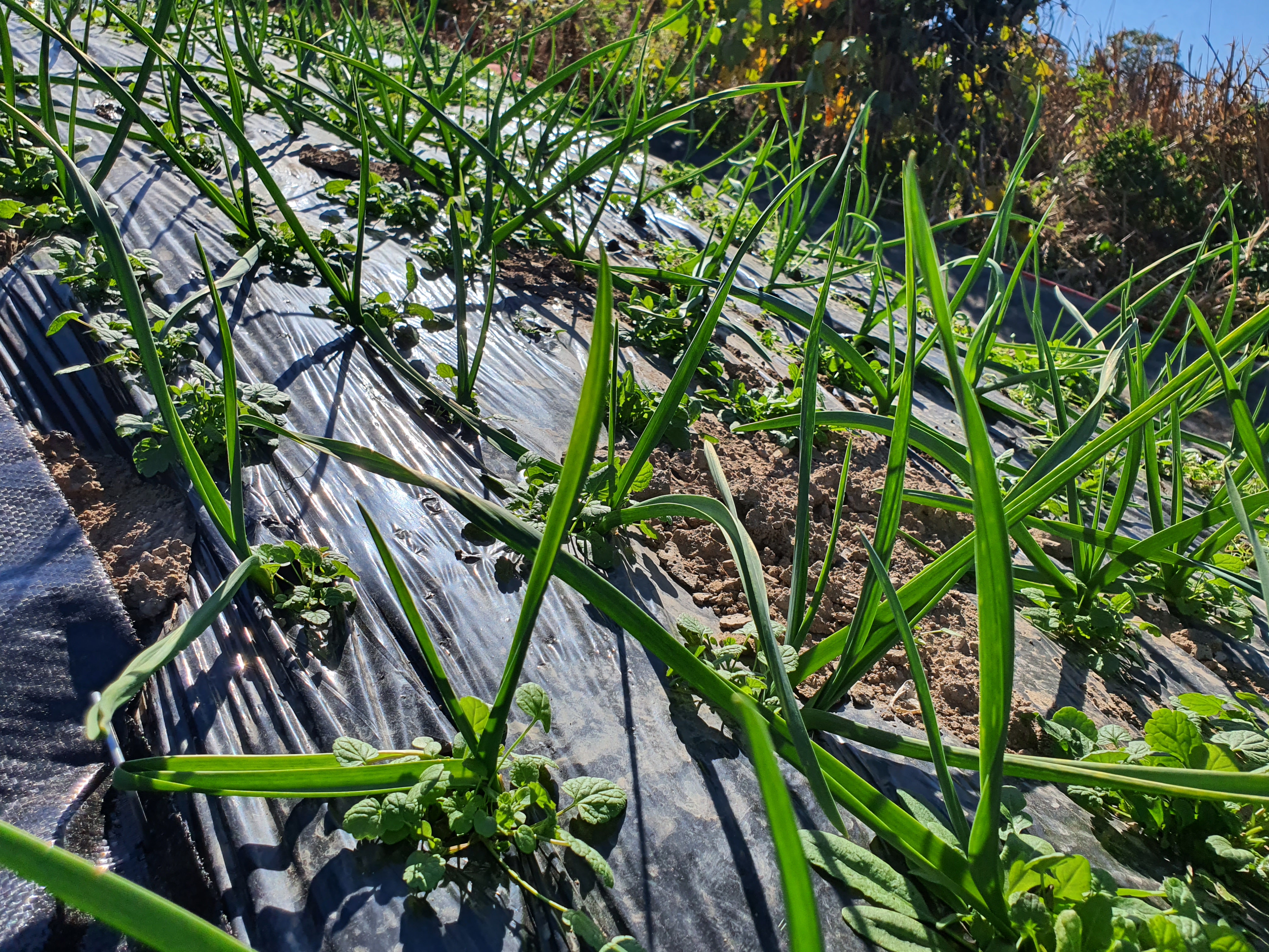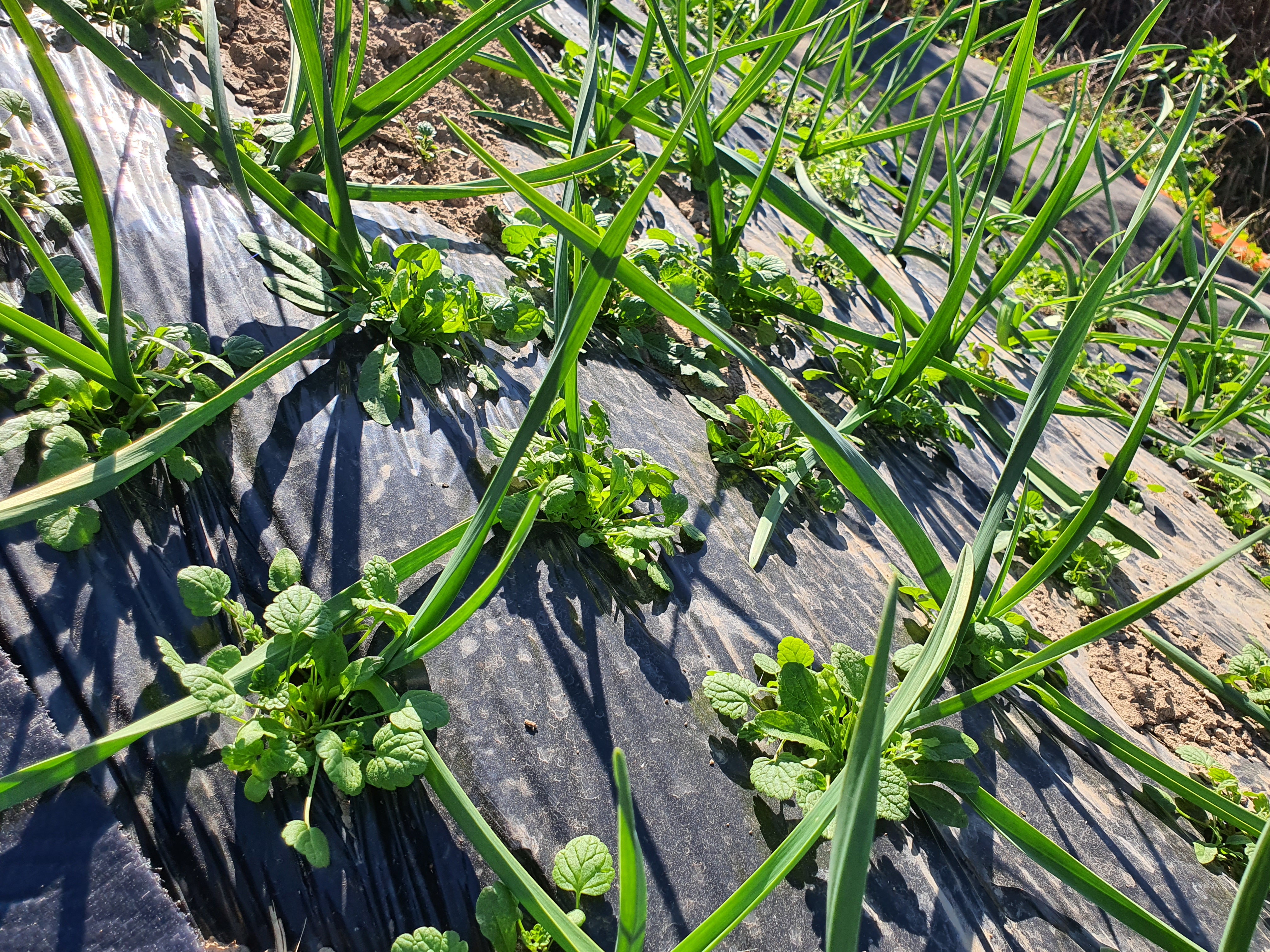 제초제를 뿌리지 않고 마늘을 심었는데, 벌써부터 잡초들이 춤을 추고 난리가 났습니다.
