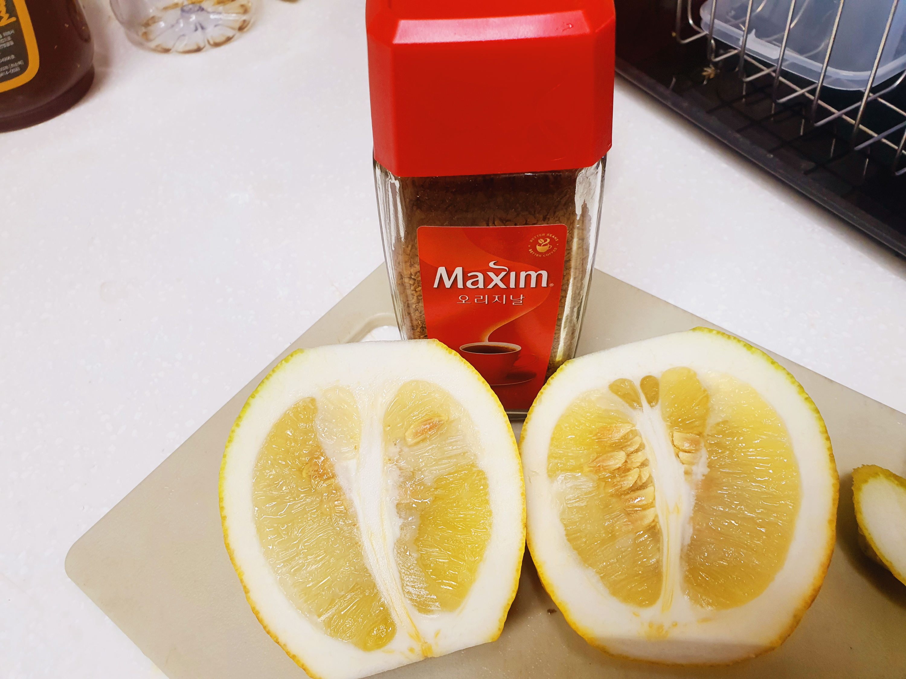 그거 사서, 레몬을 반으로 자른다음 기구에 대고 누르면