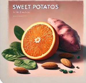 고구마에는 베타카로틴이 풍부하게 함유되어 있어, 비타민 A로 변환되어 면역력을 강화시킵니다. 비타민 A는 피부와 점막을 보호해 외부 병원균으로부터 몸을 방어하는 데 중요한 역할을 합니다. 구워서 먹거나, 찜으로 만들어 섭취할 수 있습니다.