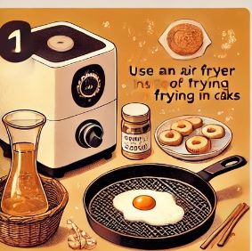 - 방법: 기름 사용을 최소화하기 위해 에어프라이어를 활용하세요. 에어프라이어로 전을 조리하면 기름 사용을 줄이면서도 바삭한 식감을 유지할 수 있습니다. 또한, 식용유 대신 올리브오일이나 코코넛 오일 같은 건강한 기름을 사용하는 것도 좋은 방법입니다.