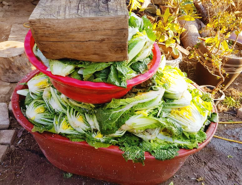- 배추를 소금물에 담가 절이기를 시작합니다.