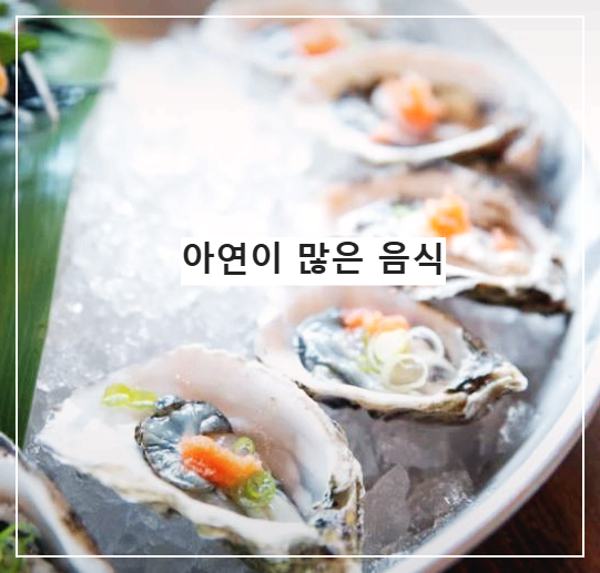 - 굴은 아연 함유량이 단연 최고입니다. 굴 6개만 먹어도 하루 권장량을 충족할 수 있죠.