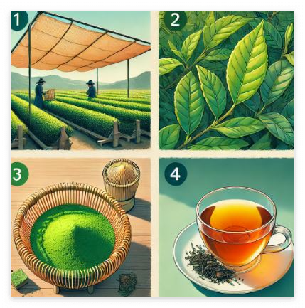 | 제조 과정 | 찻잎을 증기로 찐 후 가루로 만든다 | 찻잎을 찌거나 볶아 건조시킨다 |